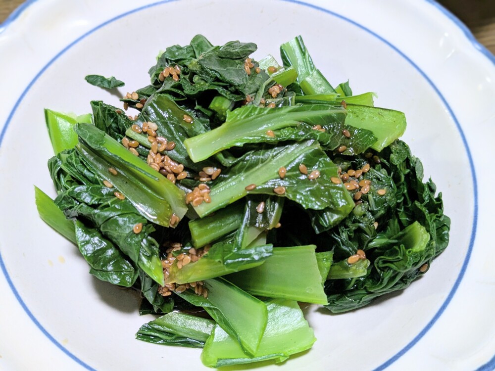 気温も下がってきたので、葉物野菜のお味はどうかなとお浸しとサラダに🥬