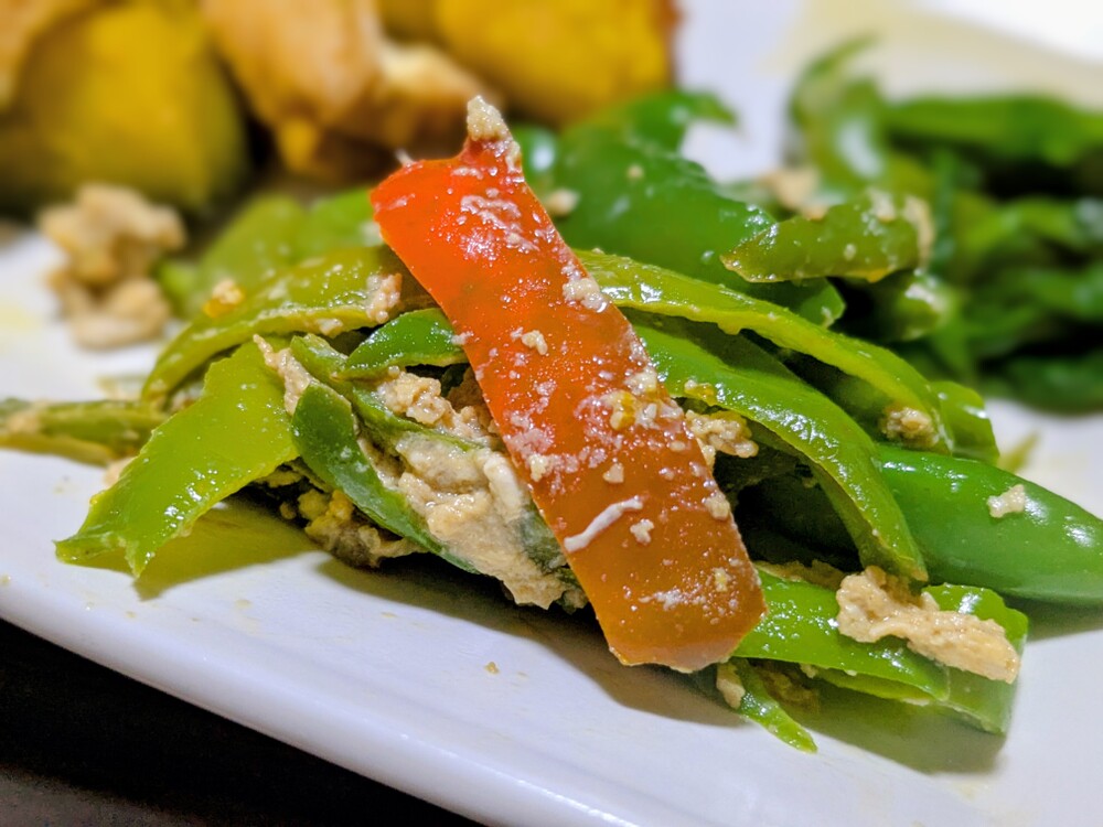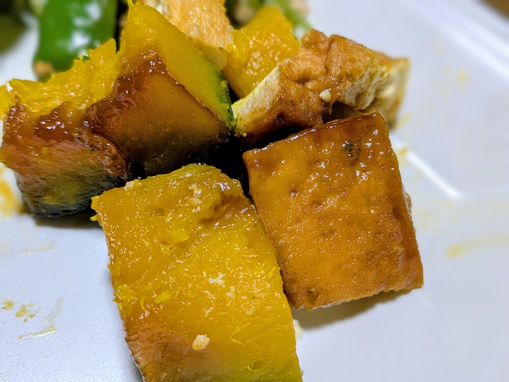 昨晩はかぼちゃと厚揚げの煮物と霜前に収穫したピーマンとししとうが残っていたので卵とじ、ほうれん草が少し出来たので湯がいて味見してみましたよ🍀