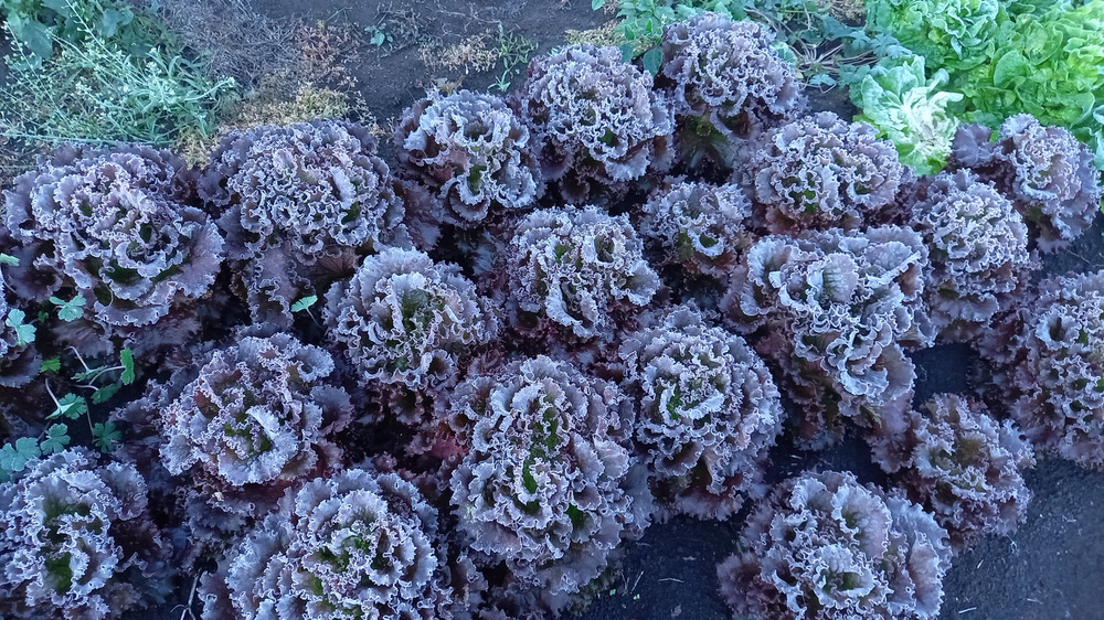 霜が降りてくると少し肌に傷が入ったりして見た目には落ちるのですが、お野菜も凍らないようにって頑張ってくれてます☆