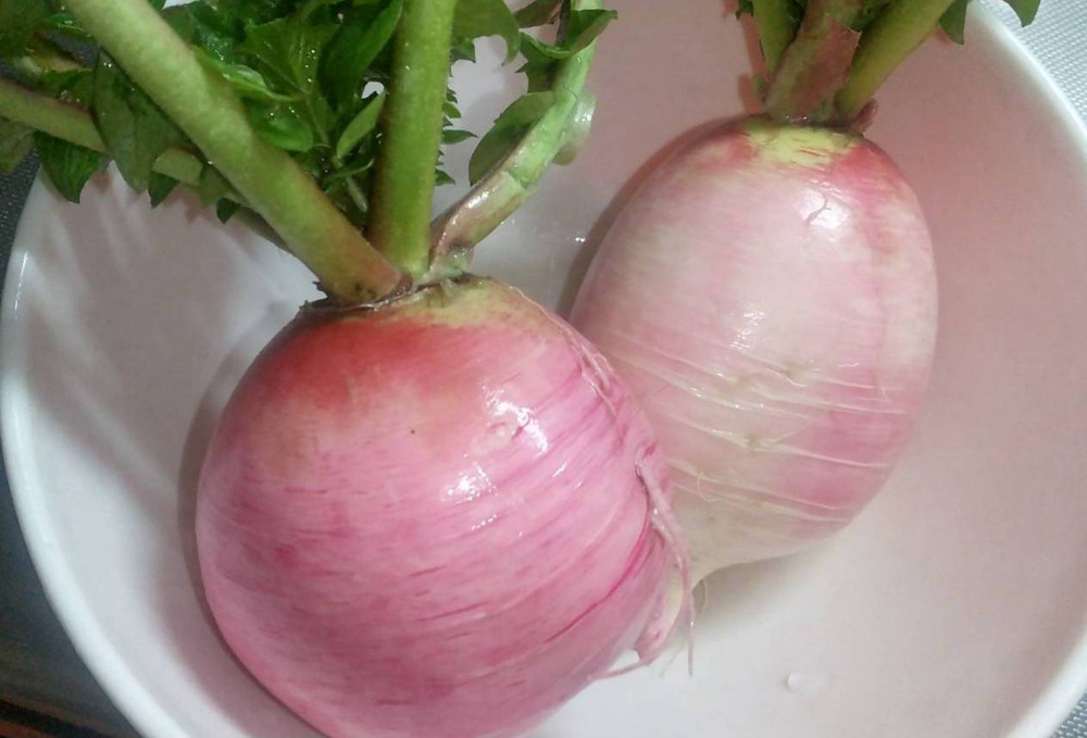 寒さの中、じっくり成長してくれていた、桃ほっぺと紫大根(ししまい)です。