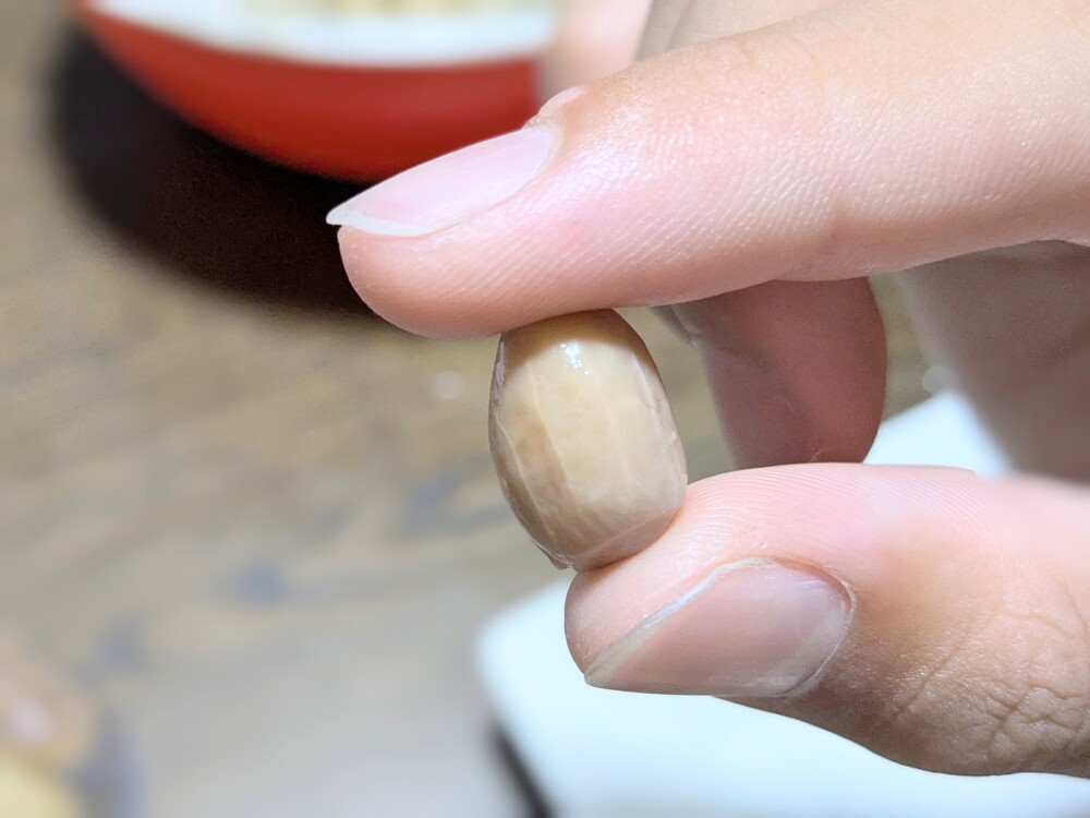 ③圧力抜けたら茹で汁ごと多めお塩を入れて一晩、冷蔵庫に入れておきます。(お塩を落花生に浸透させる為)出来上がりです。