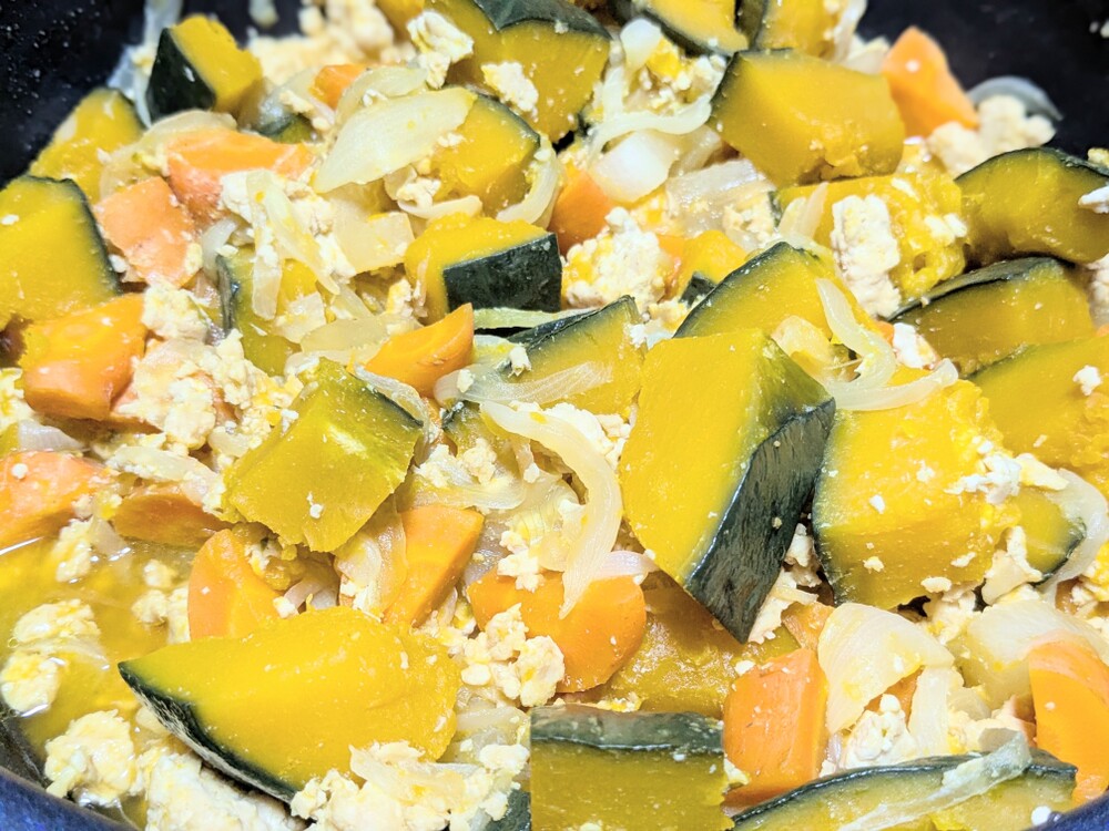 かぼちゃの甘さ、オクラの旨味、玉ネギと人参のカリカリ最高🍀