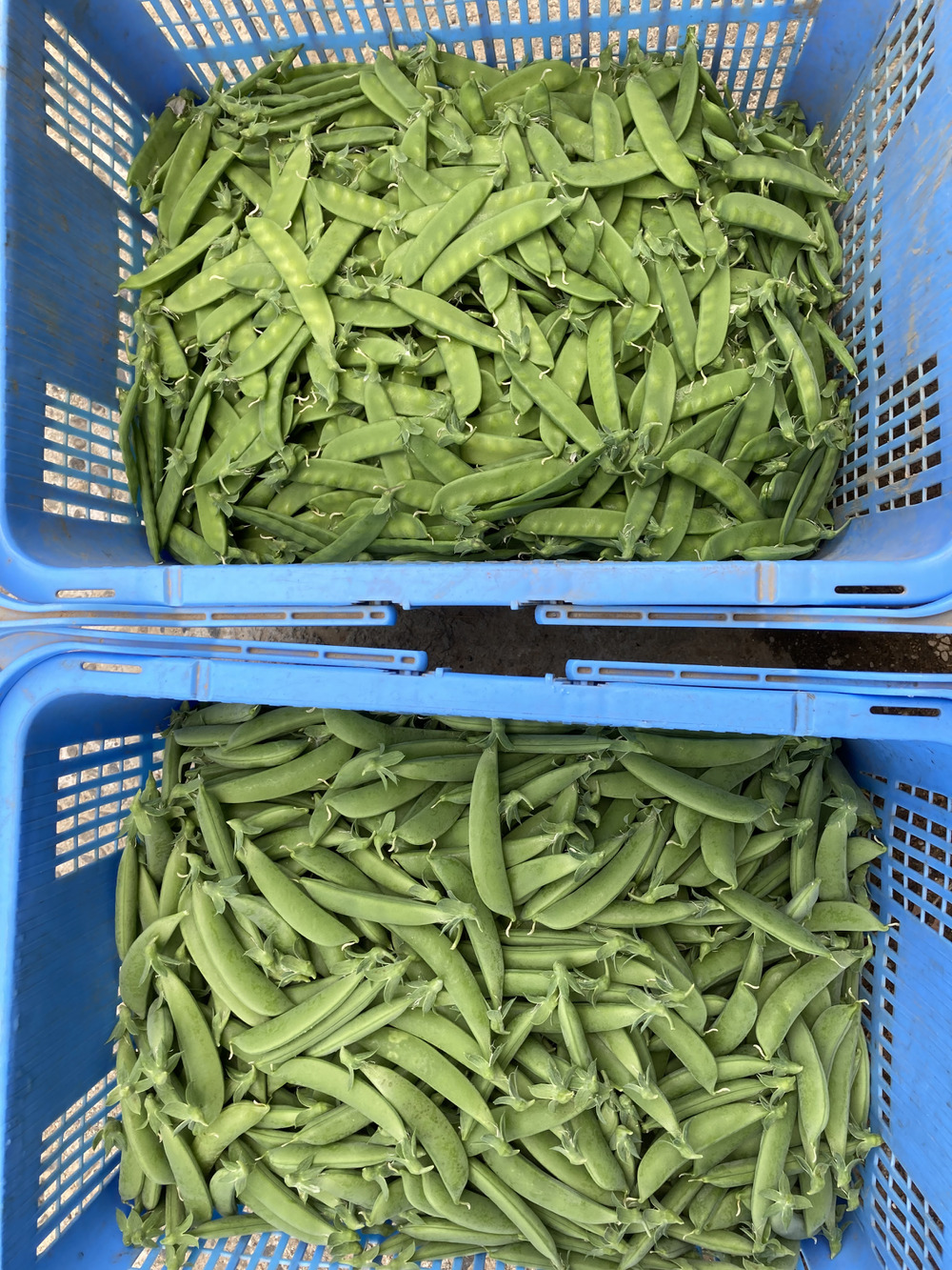 キヌサヤ、スナップエンドウは収穫最盛期。塩茹でしただけでもぷりぷり甘い!