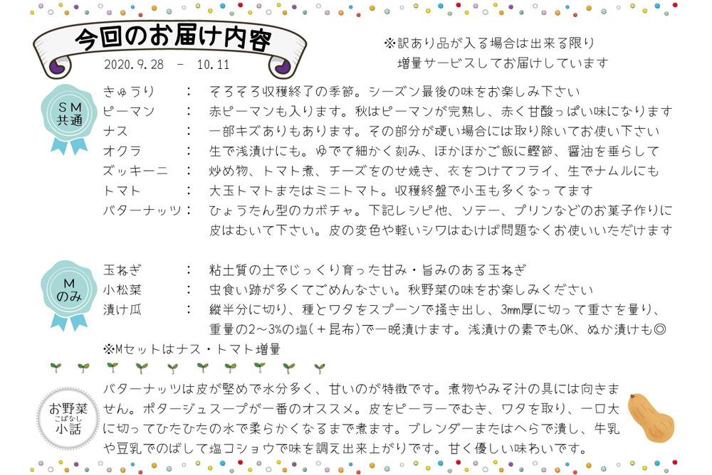 ただいまの「子育て農家の野菜セット」ラインナップ
