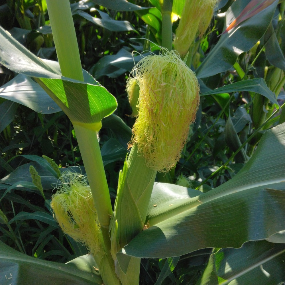 栽培中の「みんな大好き!ポップコーン」。おかげさまでこの蒸し暑さを喜んでいるようにぐんぐん大きくなり、画像の通り、3m近い大きさになっています。そしていよいよ穂も出て来ました!