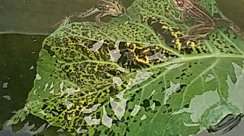 キャベツの葉を浮かべたら、その上に乗ってます🎵