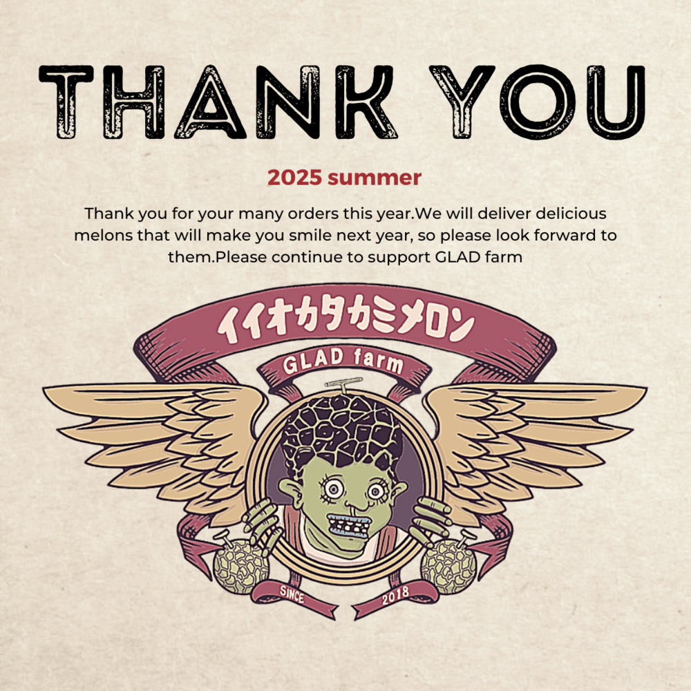 ⳹ 2025年のメロンの販売、収穫は終了させて頂きました ⳼