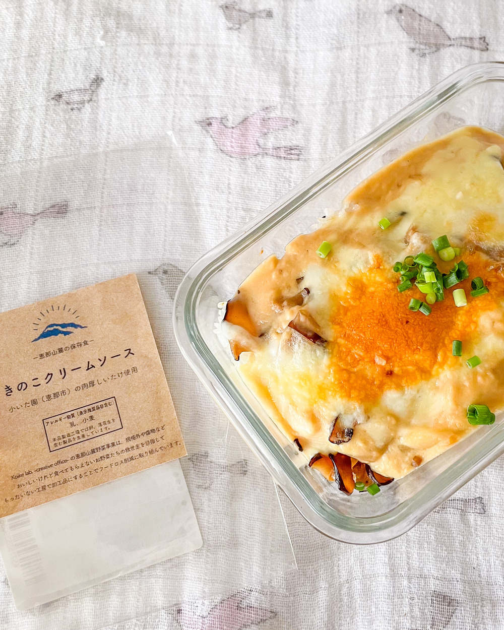「きのこクリームソース」の椎茸さんは「小いた園」さんの子たち。