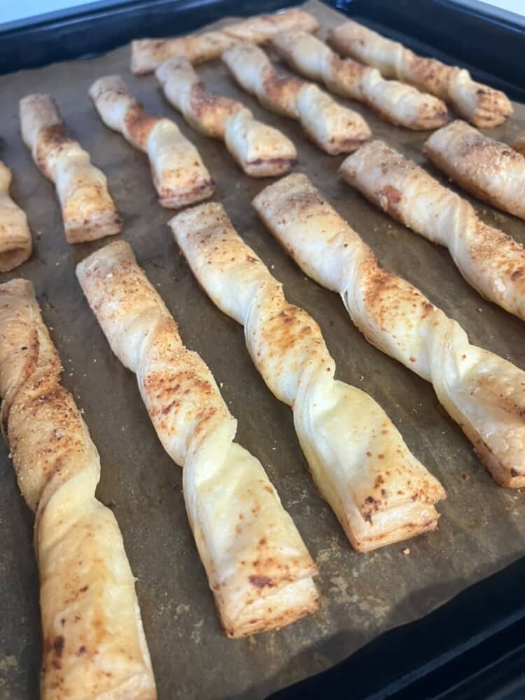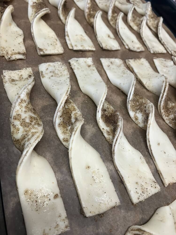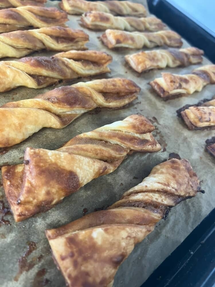 写真は、もったいない工房のスティックパイの焼き工程です。