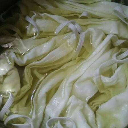 自粛生活の中、染め物をしてみました😉カレー粉、小豆ゆで汁、人参葉のゆで汁、紅茶🎵