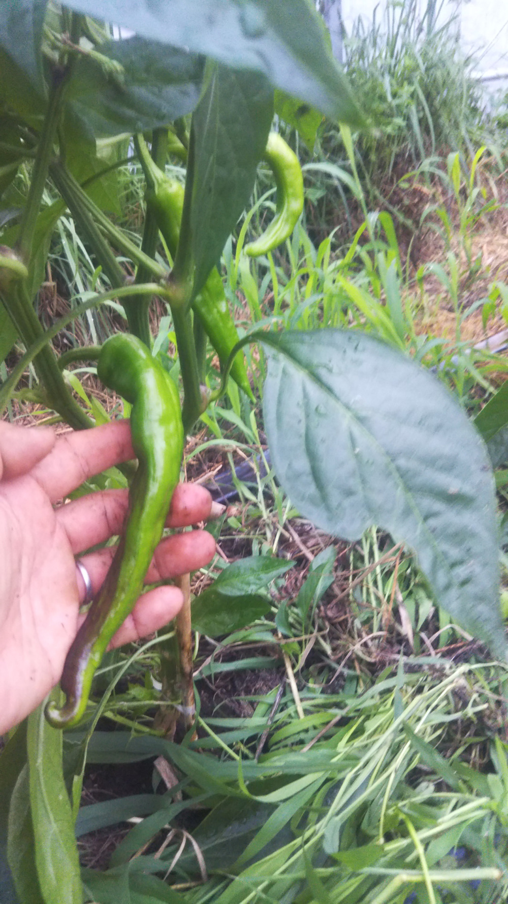 あっ❗万願寺甘唐辛子やししとうが採れ出しました😁