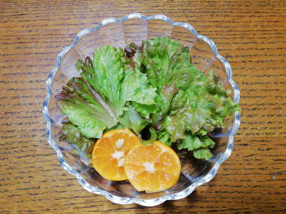 今日は、カラマンシーをリーフレタスに添えてみました。相変わらず酸味が効いていて、サラダにはぴったりです。カラマンシー入り野菜セットの販売を始めました。これからが楽しみです。