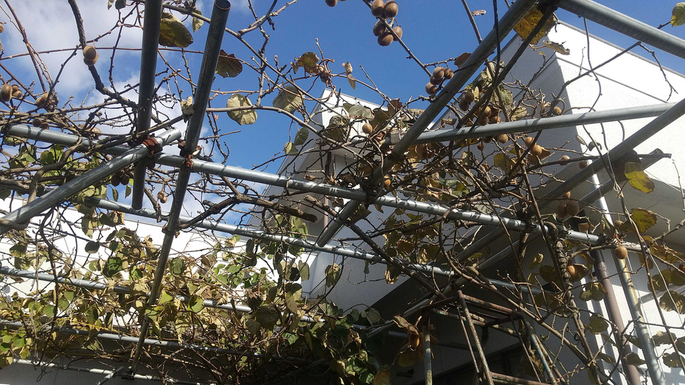 今日は、やっとキウイフルーツを収穫しました。10月頃から収穫は可能だったのですが、完熟の状態での収穫にこだわったので、すっかり遅くなってしまいました。鳥の被害が多く、収穫量は15㎏ほど、例年の1/3程度でした。