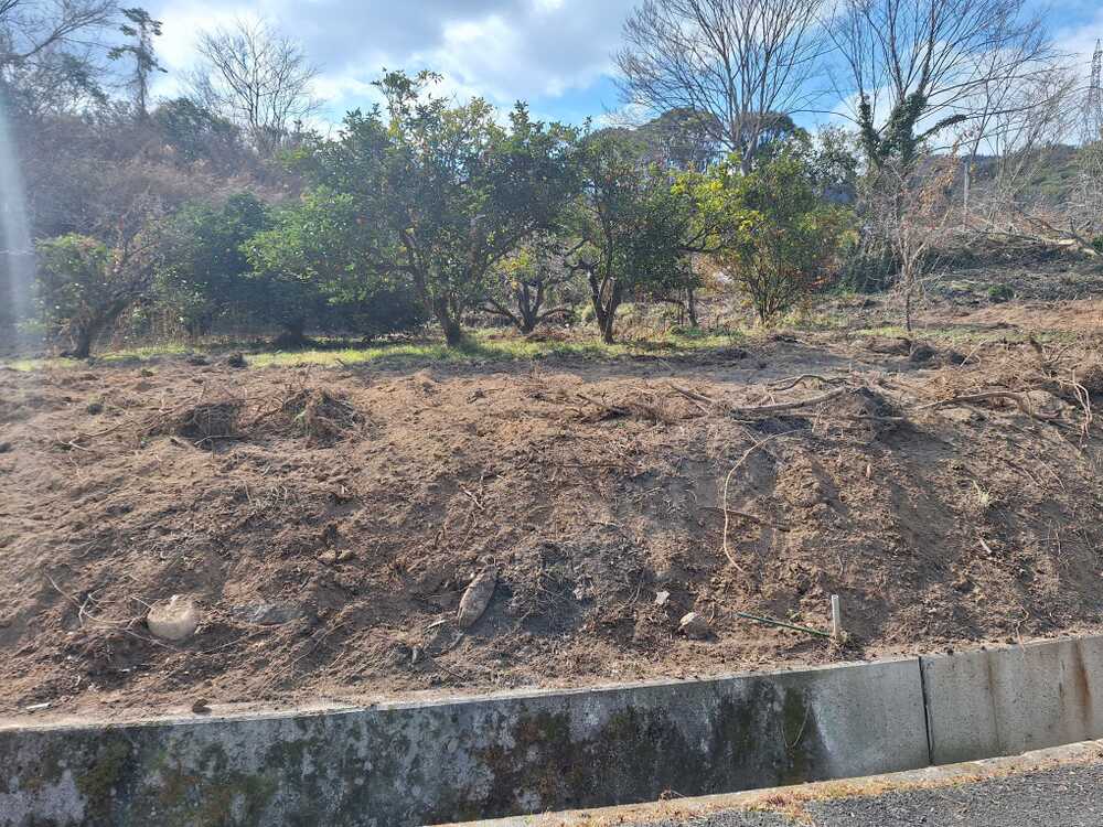 ネーブル畑の隣も、片付けています。元々ハッサクやポンカン、デコポンなどの柑橘畑で、一部家庭菜園になっていました。亡父母は、桃も栽培していました。当初は、この畑だけを片付けていましたが、周囲の荒れた畑から雑木や雑草が覆いかぶさってくるので、周囲の荒れた畑も含めて片付けています。奥(西側)に見える木々も片付けて、イノシシ柵を設置する予定です。左手(南側)の高台の木々も片付ける予定なので、昔どおり日当たりのよい畑にしたいものです。