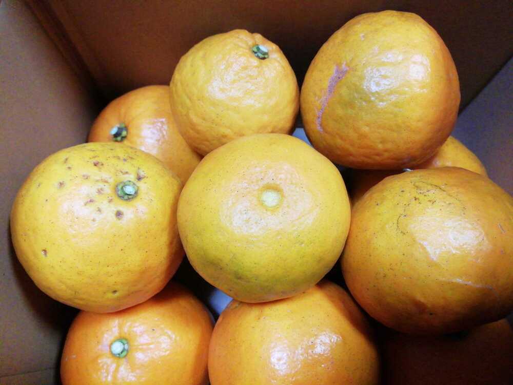 先日、温州ミカンの販売を終了するとお伝えしました。その他の柑橘、ハッサク(八朔)やイヨカン(伊予柑)などは、現状では大丈夫なようです。1月からは、オオタニイヨカン(大谷伊予柑)の販売を始めました。基本的に、ご注文を受けてから収穫します。