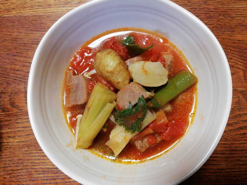 今日は、フェンネル、ネギ、キクイモを、牛肉とスープにしてみました