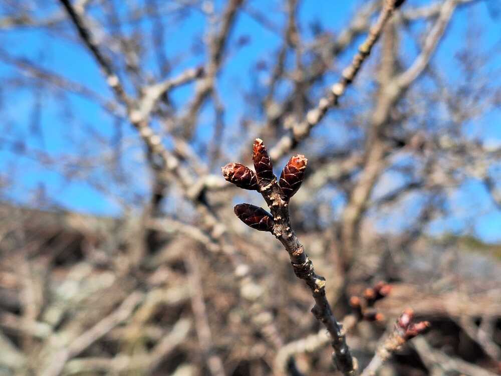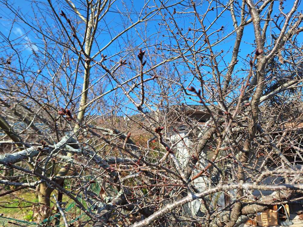 啓翁桜や八重桜のつぼみが膨らんできました
