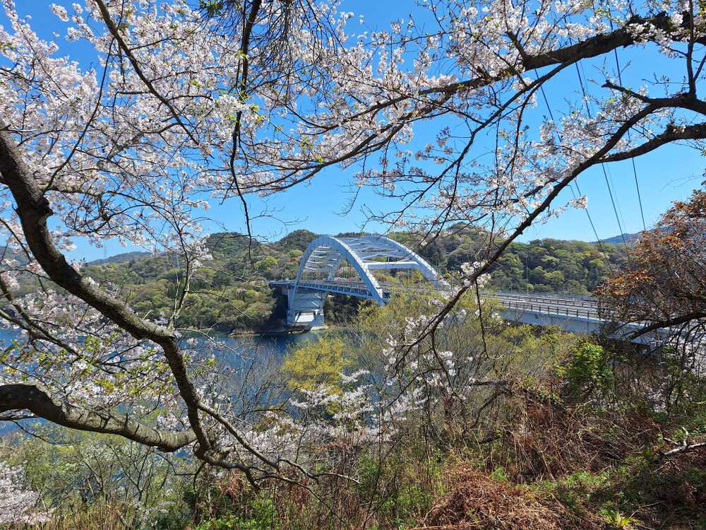 当地は島で、海に囲まれているため冬は比較的暖かいのですが、海水温の低い春先は、暖かくなるのが遅れます。サクラの開花も、四国や本州の陸地部より1週間前後遅れます。最近、卒業式のサクラになりつつあるそうですが、当地では、まだ入学式のサクラです。これから咲くサクラの品種もあり、もう一度花見が楽しめそうです。