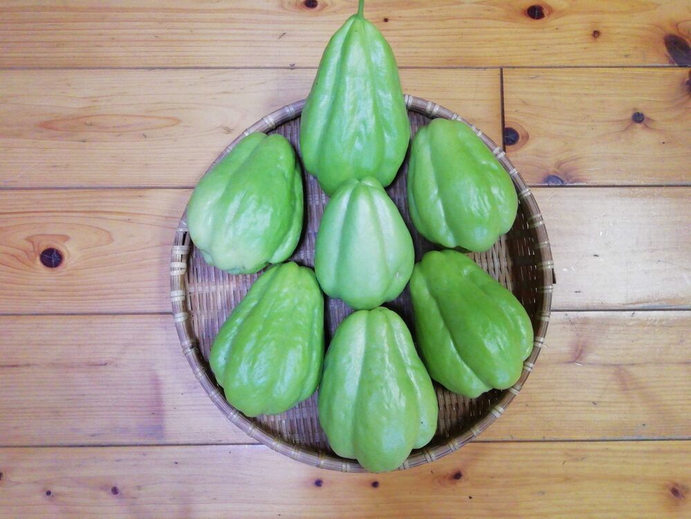 本日より、ハヤトウリの収穫が増加し、「ハヤトウリ(2.4㎏前後、農薬・化学肥料不使用))の販売を開始しました。