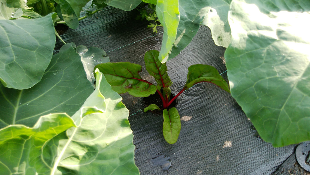 当農園では、農薬を使用しないため、アブラナ科のキャベツの隣にセリ科のセロリ、ヒユ科のスイスチャードといったように、科の違う野菜を植え、互いが害虫を追い払ったり、助け合ったりするようにしています。