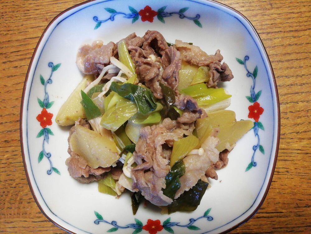 牛肉と九条太ネギ、ハヤトウリ、エノキタケを煮てみました。ネギは、甘く、柔らかく、美味しい。当農園では、まず自分が食べてみて、美味しいものを商品にしていきます。