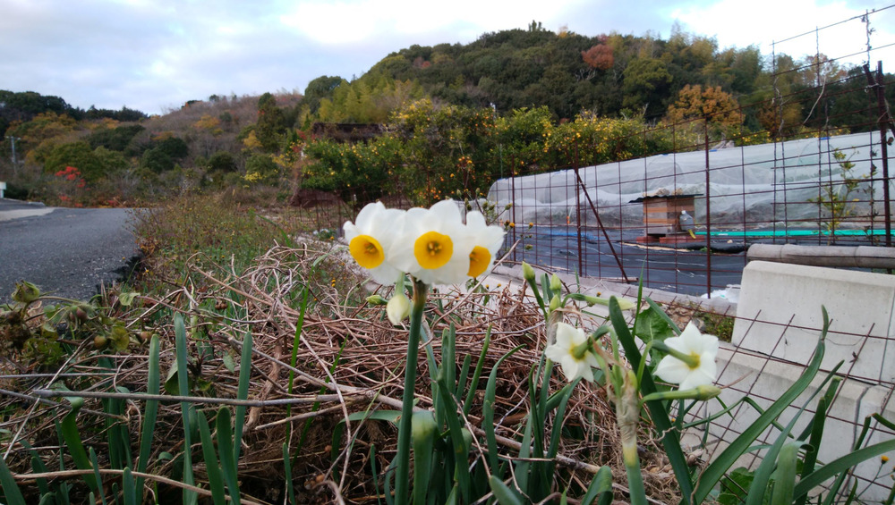 12月中旬となり、寒い日が続いている中で、水仙の花が咲きました。