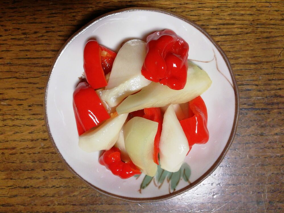 2枚目は、完熟ピーマンとハヤトウリの甘酢漬けです。