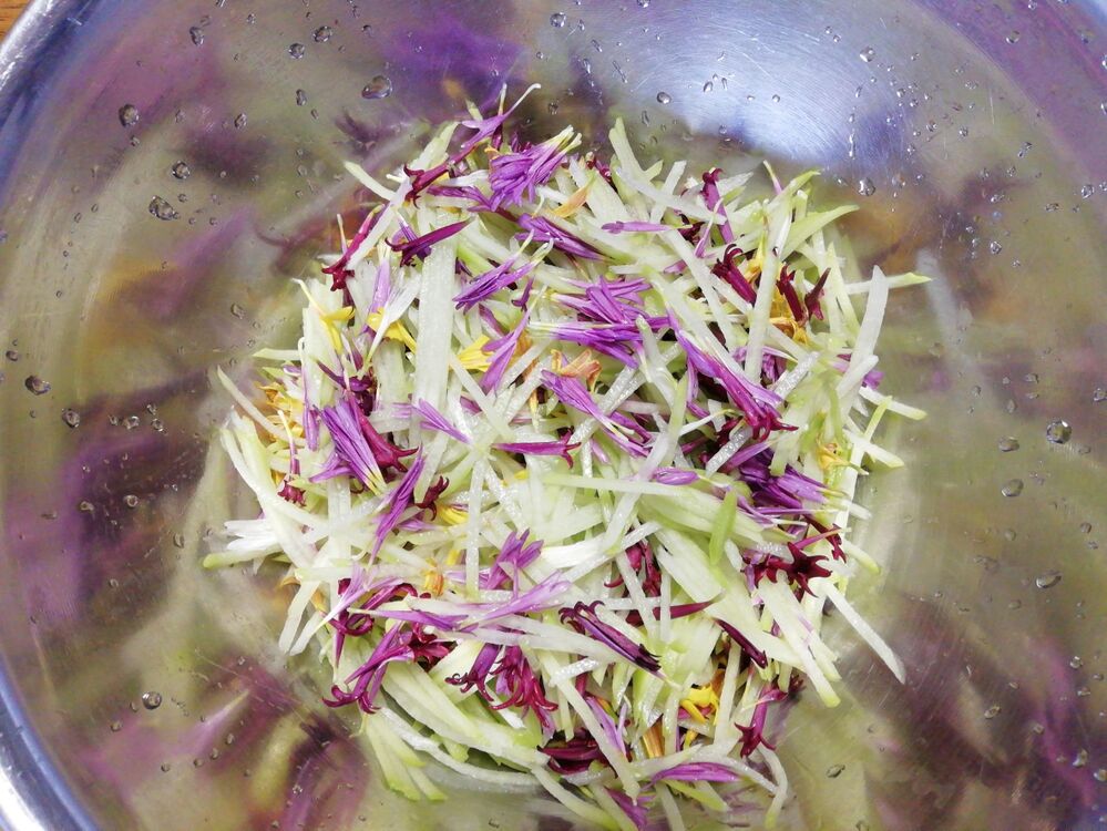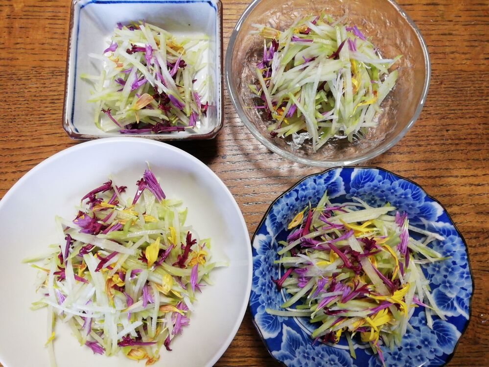 食用菊がこんなに長く収穫できるものとは思っていませんでした。また、菊の花は、冷蔵や冷凍でかなり長期間保存がきくこともわかりました。