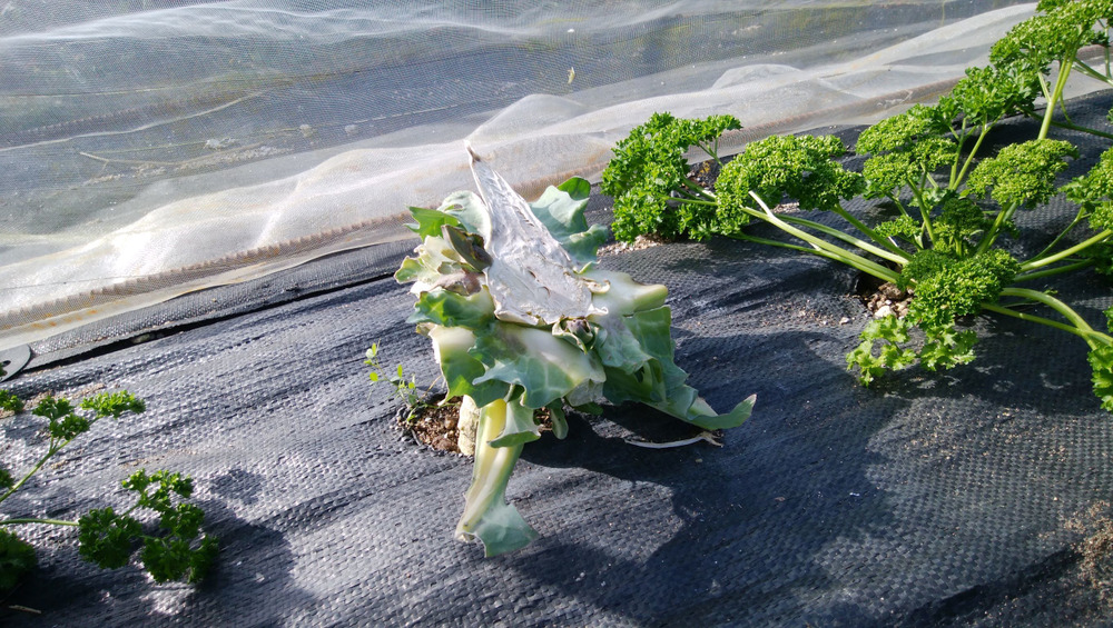 キャベツやブロッコリー、カリフラワーを収穫すると、コンパニオンプランツとして植えている、パセリやセロリ、シュンギクが大きくなります。