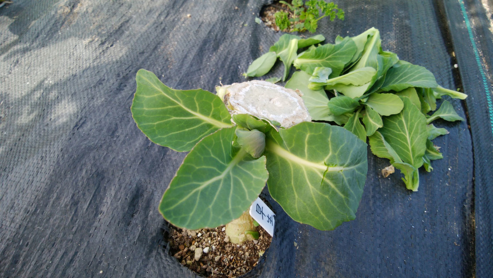 キャベツやブロッコリー、カリフラワーのわき芽が育つ