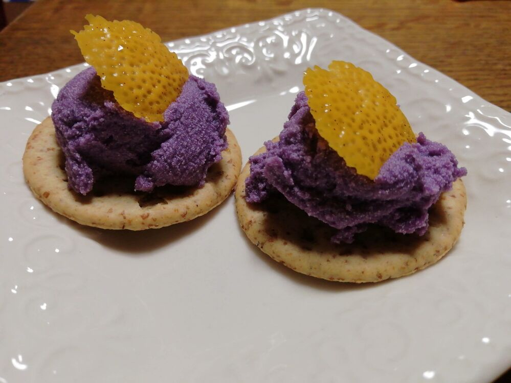 余ったクリームは、クラッカーに載せていただきました。パープルスイートロードの色や味を楽しみました。