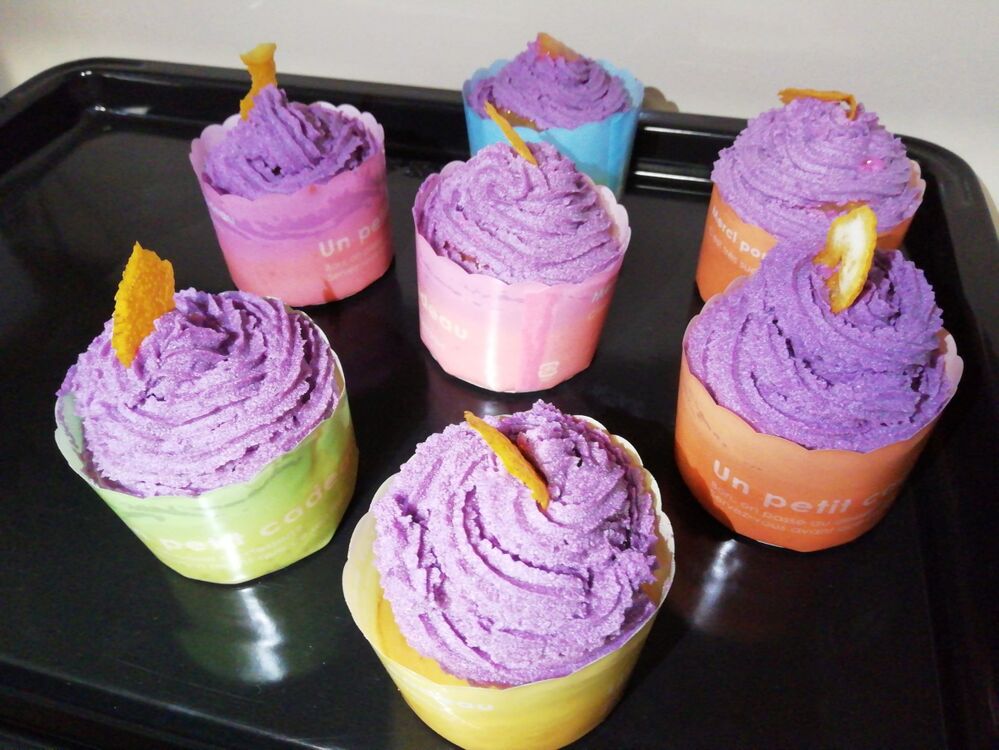 今年の我が家のクリスマスケーキは、オーブンで焼いたマフィンに、サツマイモ(パープルスイートロード)を使ったクリームをかけた、紫芋のモンブランです。クリームは、サツマイモ(パープルスイートロード)自体の甘さを生かせるよう、甘さを控えめ作りました。