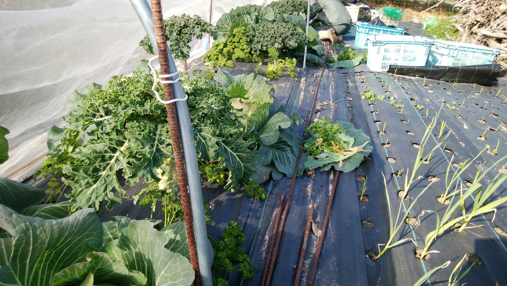 キャベツの生長は早く、どんどん巻いています。また、脇芽も大きくなってきました。先日出荷した野菜セットにも入れています。