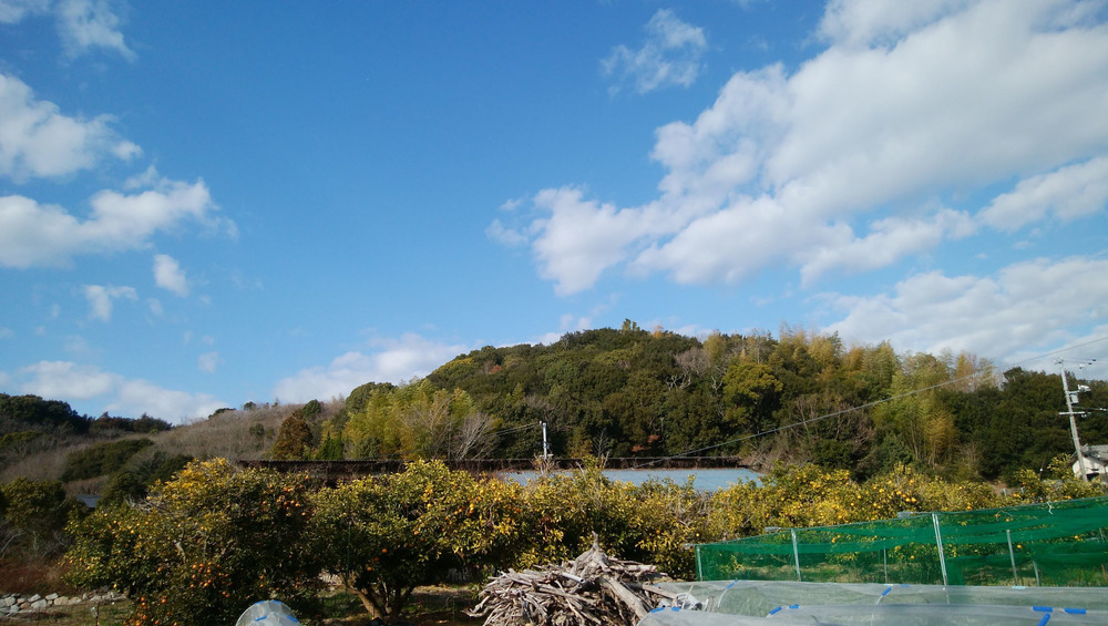 この畑は元々柑橘を栽培していましたが、手入れが行き届かず、雑木林となっていました。数年前に重機で雑木を抜いて、畑に戻しました。雑木の細い枝は焼却しましたが、太い幹は畑の中の数か所に分けて積んでいます。ストーブやお風呂の薪としても利用しています。