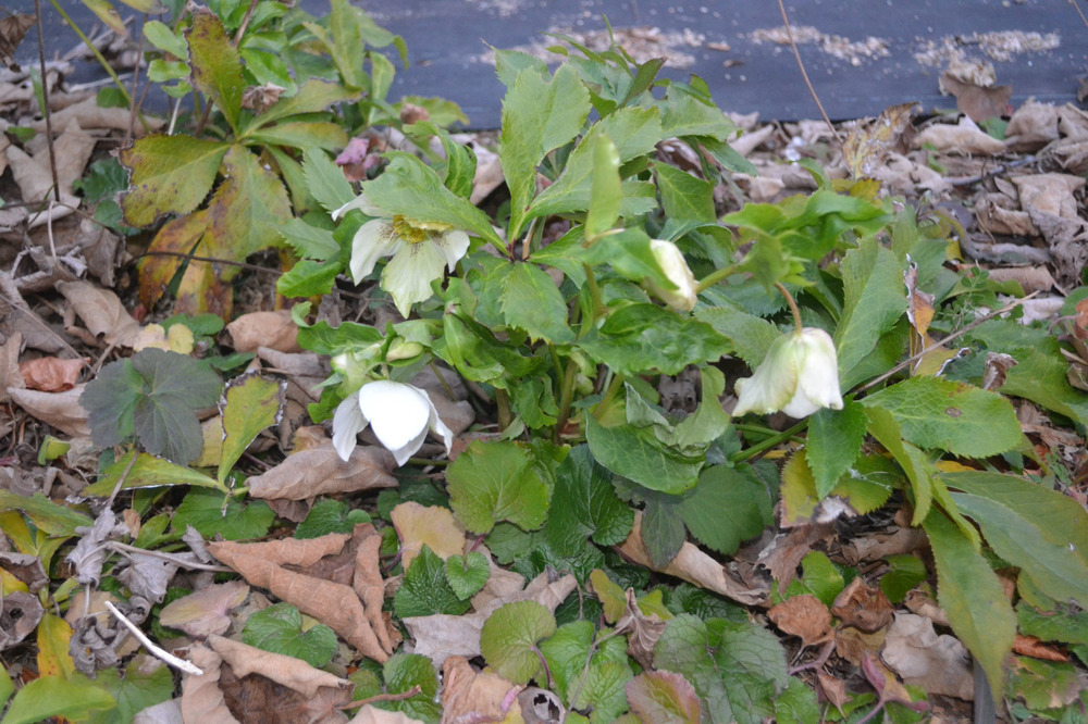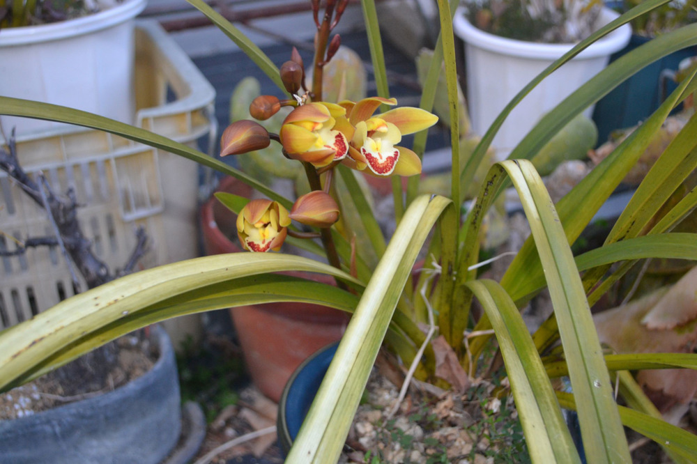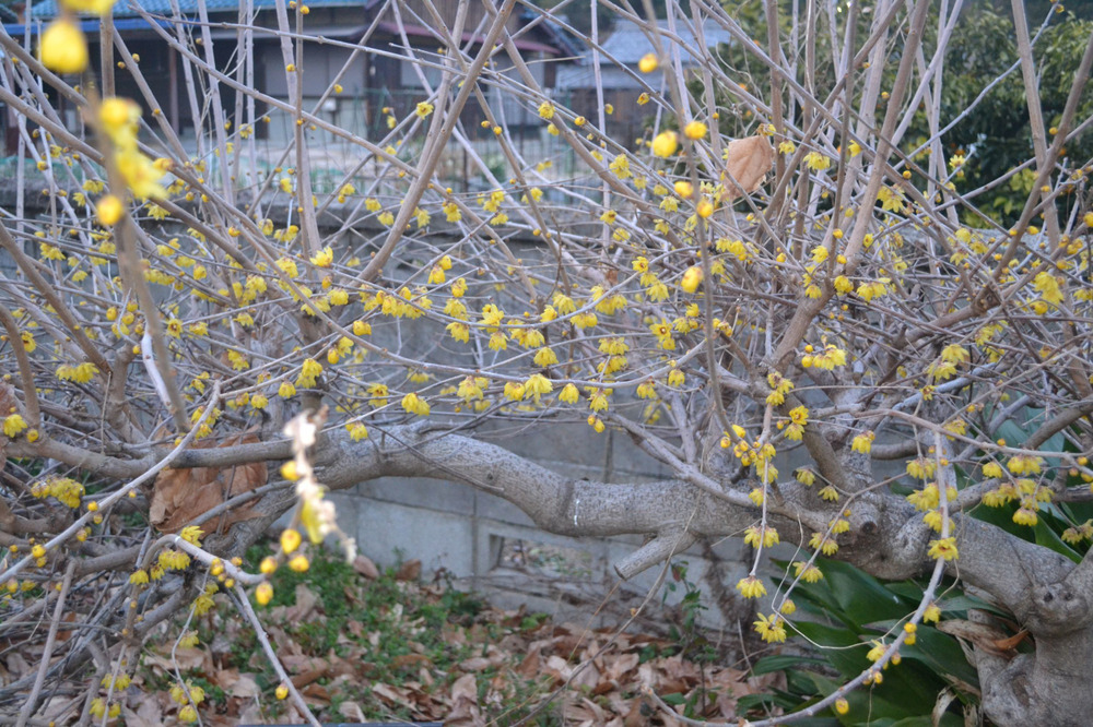 足元には、クリスマスローズやシンビジュームをはじめ、いろいろな花が咲いています。ロウバイも満開です。