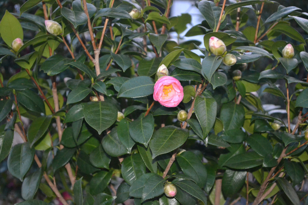オオキバナカタバミの花が元気に咲いています。ビワやツワブキの花は、終盤を迎えているようです。ピンクの椿の花は、最近咲き始めました。