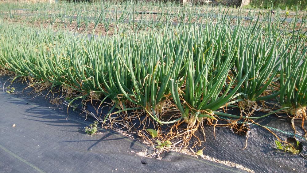 オオイヌノフグリの小さな青色のかわいらしい花が満開でした。ワケギは、球が大きくなり、葉が充実してきました。ニンニクも、球が大きくなりつつあり、葉ニンニクとしては今が最高です。秋に植えたタマネギも、もうすぐ葉付きタマネギとして出荷できそうです。
