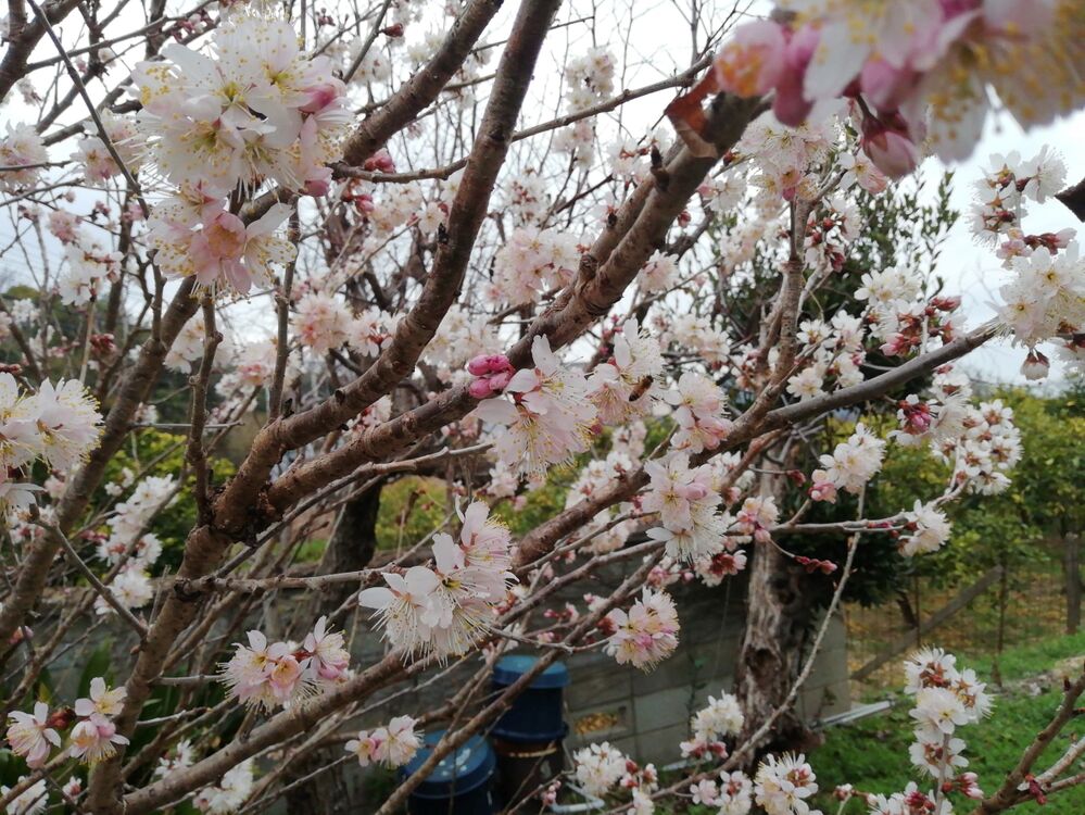 先日開花をお知らせしたサクランボが、早や満開になりました。暖かい日中は、セイヨウミツバチがたくさん蜜を集めに来ていました。