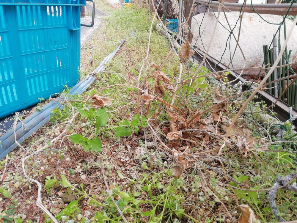 ハヤトウリを植えてある場所の除草をしました。今冬は、すごく寒かったので根が生きているかどうか心配です。