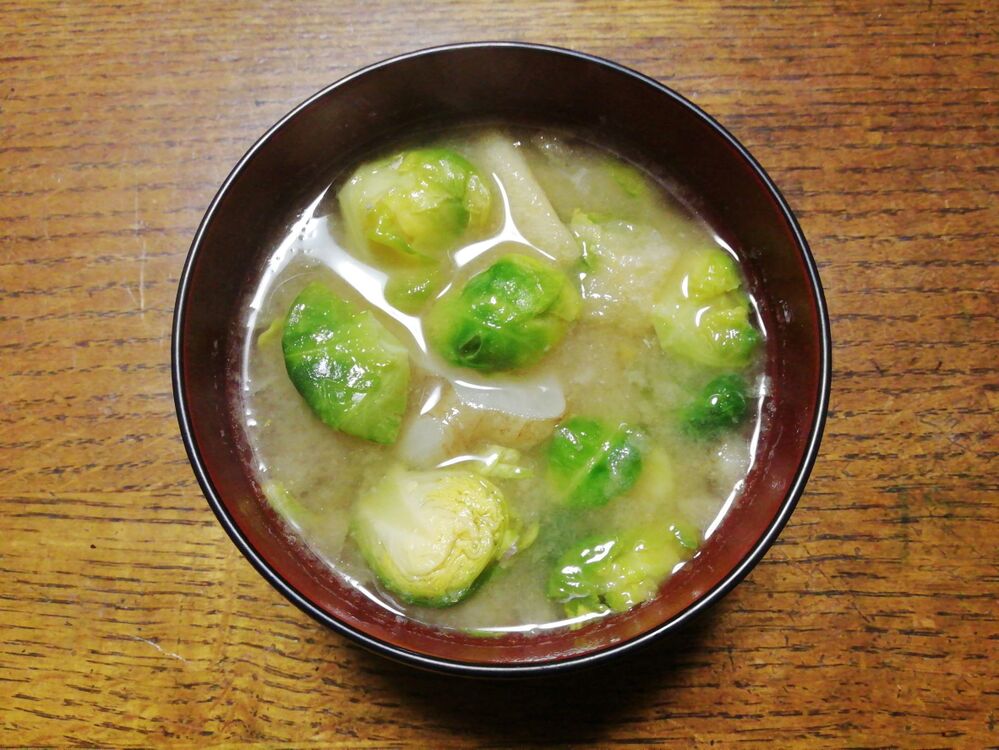 キクイモを掘ってみると、白い細い根がたくさん出ていました。もうじき芽が出てくるでしょう。本日で、キクイモの今シーズンの販売は終了です。芽キャベツと一緒にみそ汁にしました。