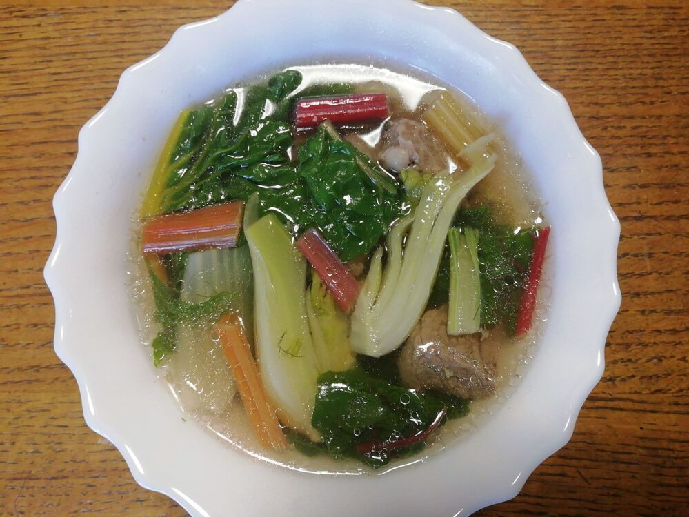フェンネルの一番大きくなった株を収穫してみました。スイスチャードや牛肉とスープにしてみました。