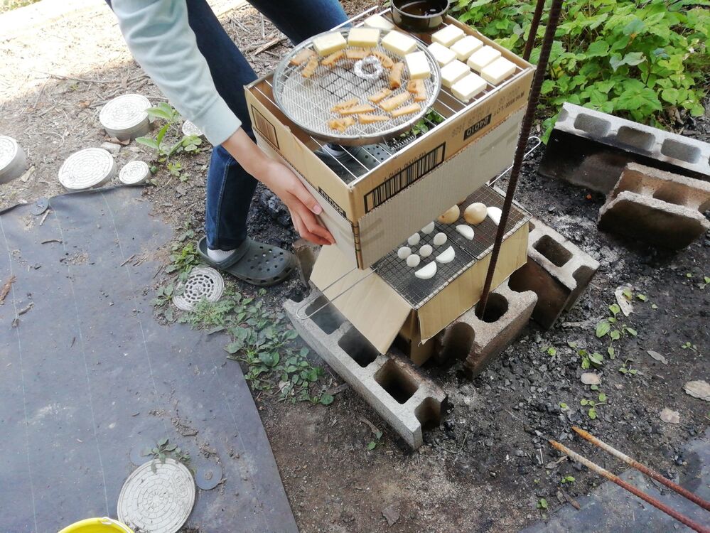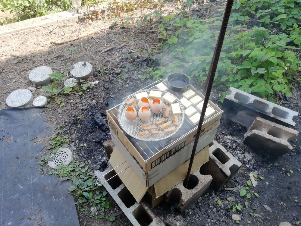 タケノコ水煮作りが一段落したので、家族で燻製づくりに挑戦してみました。タケノコや卵、豆腐、漬物、いろいろな食品で試してみました。