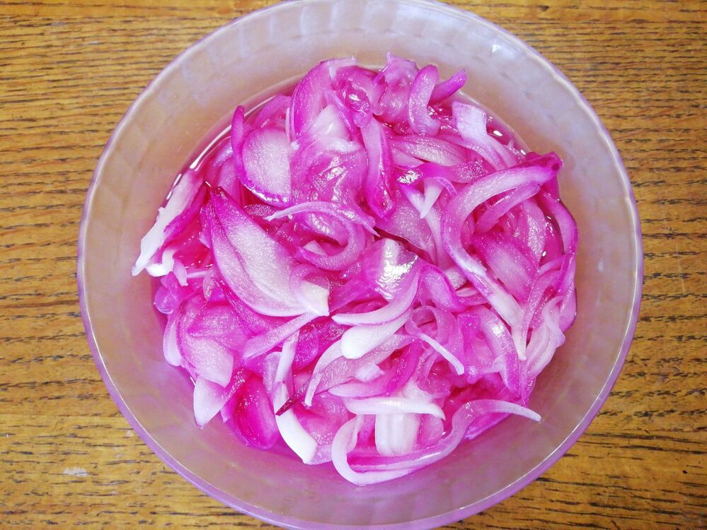 赤タマネギで、タマネギドレッシングを作ってみました。新タマネギだと、刺激が少なく、生食にぴったりです。