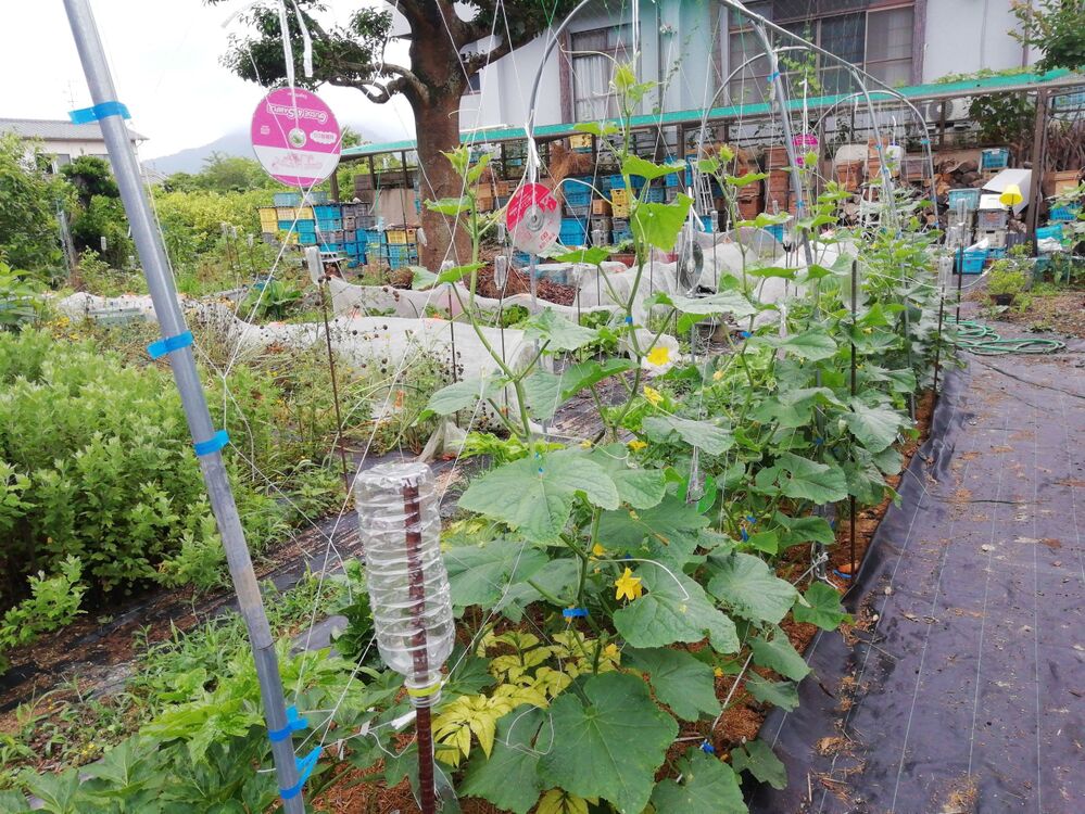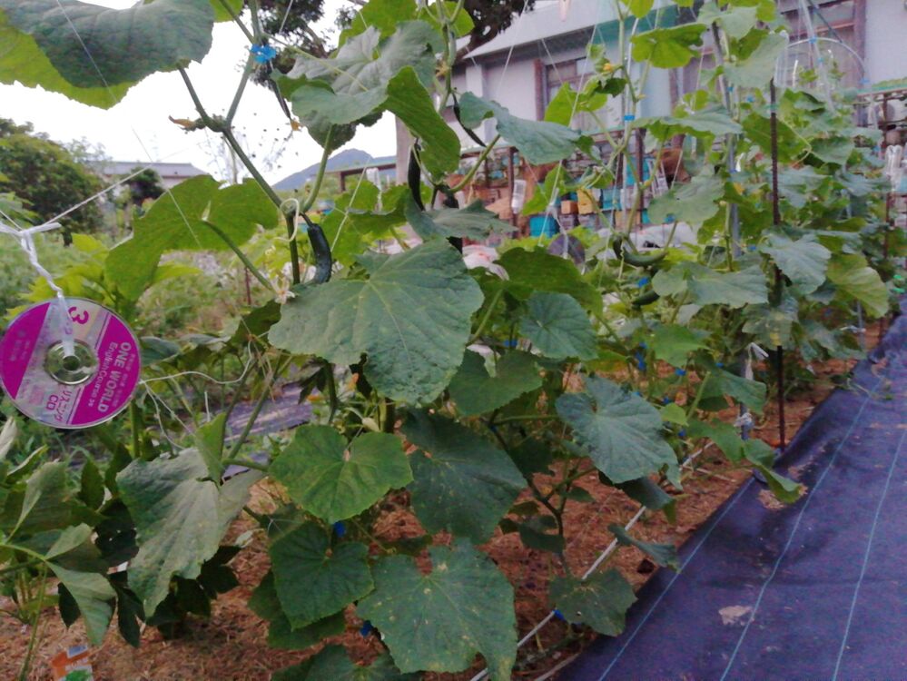 畑のキュウリは、よく生長し、収穫量が増えつつありますが、先日より食害が発生しています。おそらくカラスと思われますが、確認できていません。さて・・・・。