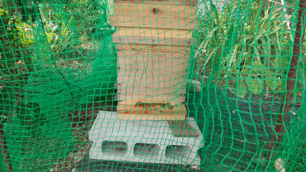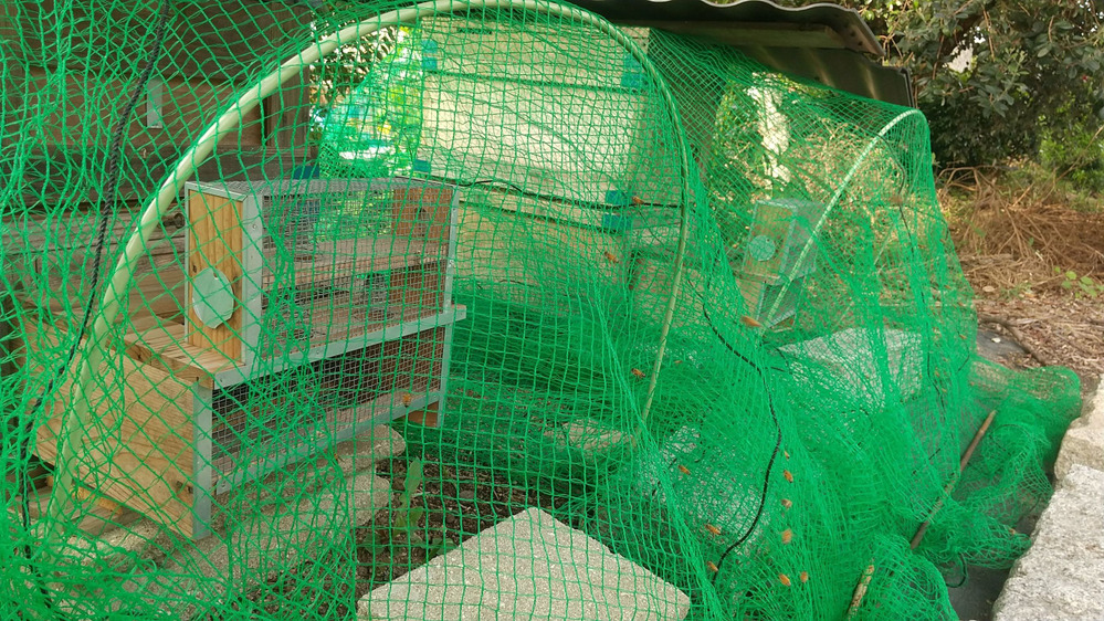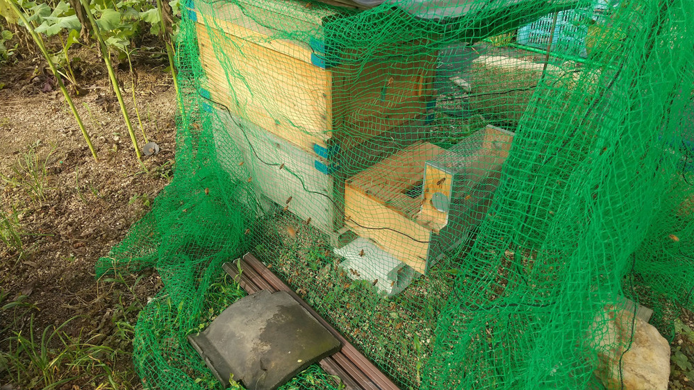 ミツバチの巣箱には、梅雨明け前から小型スズメバチやスズメバチが来ていました。今年は、梅雨明けが早いので、例年より早く、スズメバチのトラップを設置したり、スズメバチよけの網を掛けています。