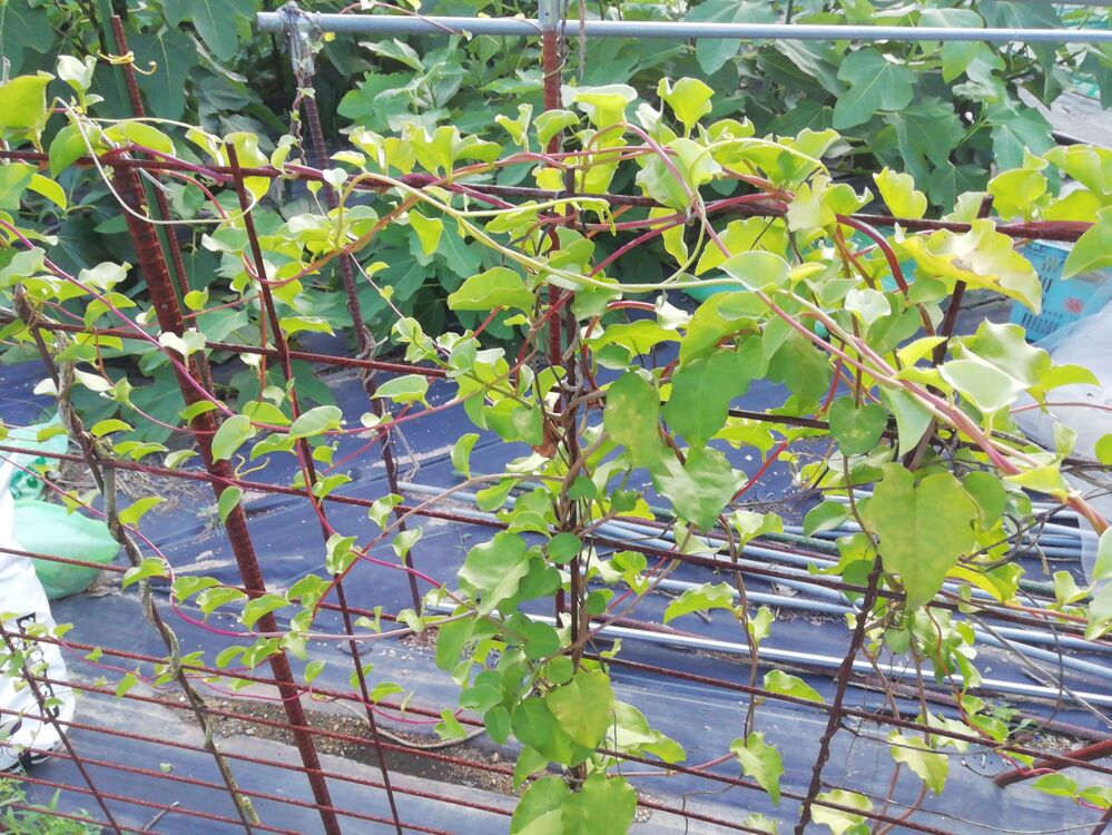 これから夏は、葉物を育てるのが難しい時期です。当農園では、ツルムラサキやエンツアイ、モロヘイヤなどを育てていますが、オカワカメも頼もしい味方の一つになりそうです。