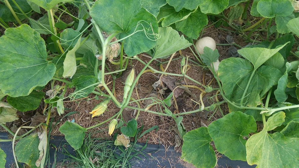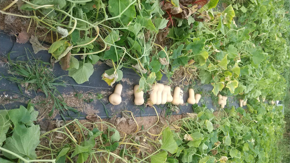 昨日、バターナッツカボチャを収穫しました。まだ、収穫していない実も多く、花もよく咲いています。大きな実を収穫し、木への負担が軽減したことで、もう少し収穫できたらよいのですが。