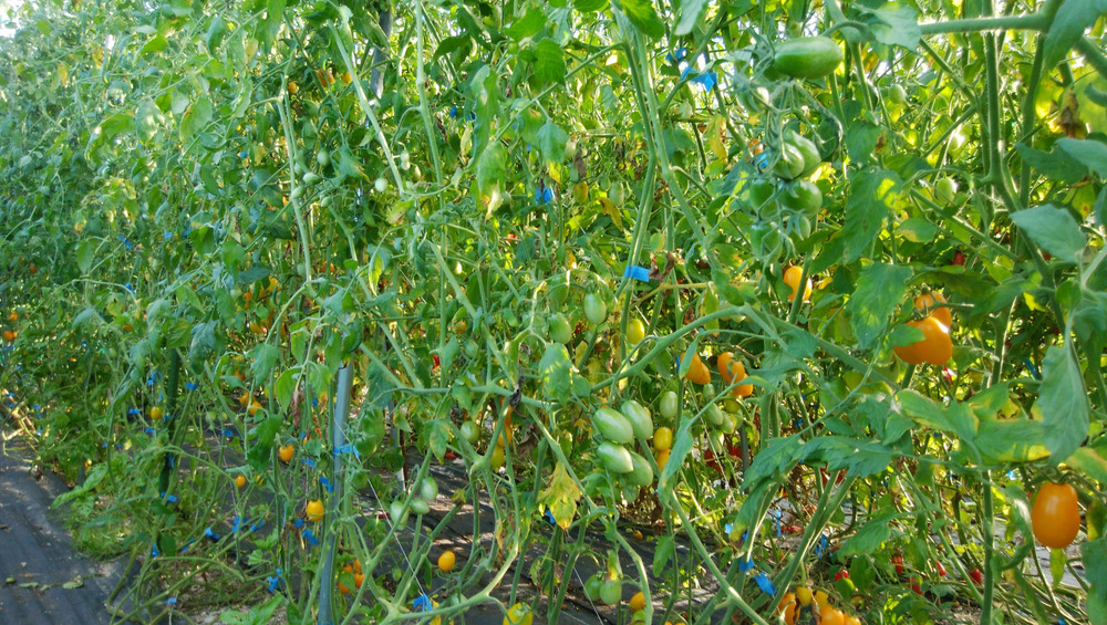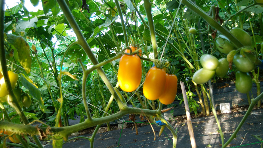 当農園では、昨年よりミニトマトのソバージュ栽培に挑戦しています。降雨によって果実が裂ける被害は少ないようです。カメムシの被害は多いものの、気温が上がるにつれて果実が甘くなり、収穫が増えてきました。