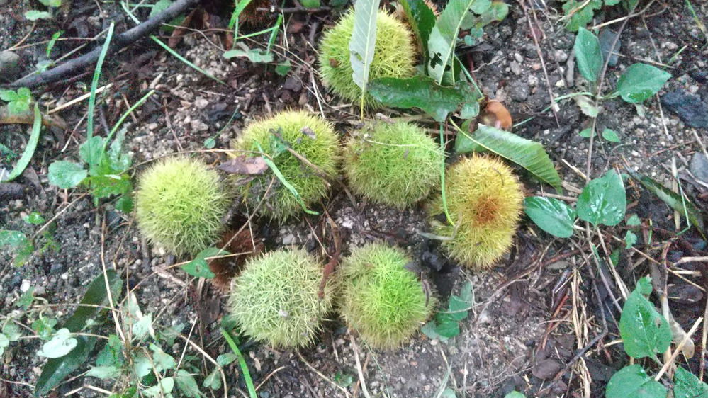 昨年は、今日9月19日が初収穫でした。今年の実はかなり大きいものの、まだイガが割れておらず、果たして中の状態は?