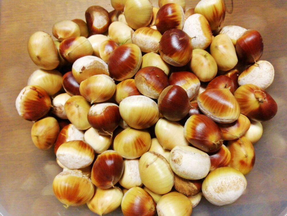 昨日落果していた栗を集めて、剝いてみました。甘みがやや物足りないものの、茹で栗にして美味しくいただきました。